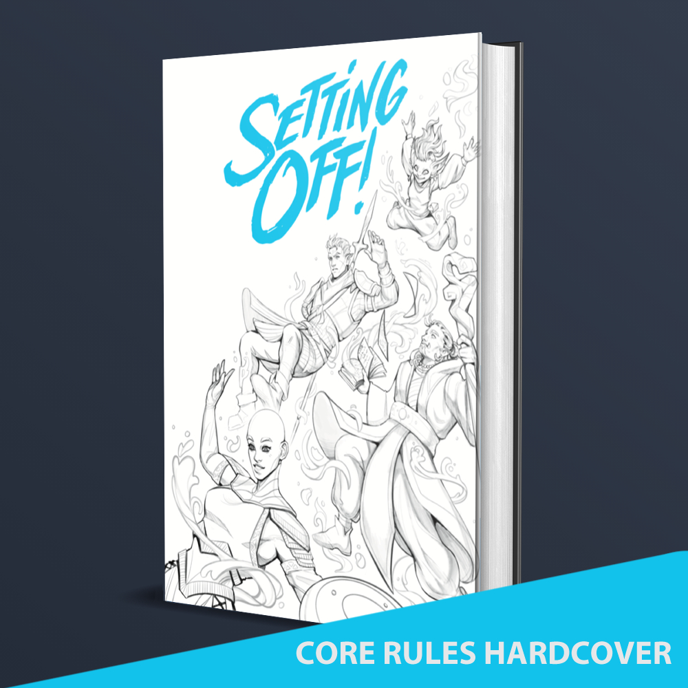 The hardcover of the core rules includes the PDF of the core rules, character sheets and game-ready archetypes. The book has the following details: